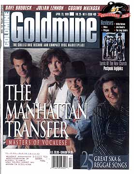 | 5000 LIGHT YEARS FROM BIRDLAND: THE MANHATTAN TRANSFER   By Chuck Miller of Goldmine Magazine Their influences are as diverse as their sound. "Uncle" Charlie Lowe, the vaudeville coach. Country singer Dianne Davidson. Teen idol Frankie Lymon. Northwestern bandleader Herb Benthien. Jazz legends Jon Hendricks and Eddie Jefferson; Dizzy Gillespie and Coleman Hawkins; the Four Seasons and the Hi-Los. From those synchronous influences came the Manhattan Transfer, arguably the most respected and honored vocal quartet today. Their most recent album, Swing, debuted at #1 on the Billboard jazz charts. Another album, Vocalese, nabbed an amazing twelve Grammy nominations. They brought Brazilian music to American radio stations, brought Bob Marley and the Wailers to American television audiences, and broadened the horizons of music lovers everywhere. The story of the Manhattan Transfer is more than just Tim Hauser, Janis Siegel, Alan Paul and Cheryl Bentyne - it also includes former members Laurel Massé and Gene Pistilli. It includes collaborators Jon Hendricks and Djavan. It includes Tubby the Tuba and Doughie Duck. It includes Trude Heller's, Kenny's Castaways, the Cafe Carlyle 9 and 11 weeknights, 10 midnight and 2 on weekends. And it all began with a cab ride. Tim Hauser loves music. All kinds, all styles, all genres. He even once told a reporter for the New York Sunday News that in college, "Music meant so much to me that I even gave up chicks." He started singing professionally at age 15, formed his own doo-wop group called the Criterions, and recorded "I Remain Truly Yours" and "Don't Say Goodbye" for Cecilia Records. "I remember the first time, as a kid, when I recorded with a group called the Criterions, and I remember the first night Alan Freed played our record, on WABC, oh my God, I was in the kitchen of our house, I had just finished doing my homework, and I thought what a thrill." Two years later, he would produce "Harlem Nocturne" for the Viscounts, which later became a Top 10 hit. He spent his college years at Villanova University, and worked at their radio station, WWVV. While enrolled at Villanova, Hauser and fellow Criterion Tommy West joined the Villanova Singers, which included classmate Jim Croce. By 1963, Hauser, West and another former Criterion, Jim Ruf, recorded as "The Troubadours Three" and performed on a hootenanny multi-act tour. After some stints in the Air Force, in the New Jersey Air National Guard, and in the advertising department of Nabisco, Tim Hauser still had a strong desire to perform and sing. He left Nabisco and recruited some musicians, and named the group the Manhattan Transfer, taking the name from the title of a John Dos Passos novel. After a couple of singles, the Manhattan Transfer - which included Hauser, Marty Nelson, Erin Dickins, Pat Rosalia and Gene Pistilli (who co-wrote "Sunday Will Never Be The Same" for Spanky and Our Gang), recorded their first album, "Jukin'" for Capitol. The album was a dichotomy of styles - Hauser preferred more R&B and harmony tracks, while Pistilli (who received "featuring" credit on the album) preferred country/western and "jug band" songs. The album sold poorly, and the group broke up in 1971. Janis Siegel was no stranger to the music industry. She was still in eighth grade when she and her friends Rona Rothenberg and Dori Miles formed their own vocal trio. "The very first name we had for our group was the Marshmallows. Then we were the Young Generation." The Young Generation hired a manager, Richard Perry, and released one single on Red Bird Records, "The Hideaway" / "Hymn of Love." By high school, the group became the Loved Ones, and recorded a record on Kapp, "It's Not Going To Take Too Long" / "Diggin' You." By the late 1960's, Rothenberg left the Loved Ones and was replaced by Anita Ball. Changing their name to a lyric in a Joni Mitchell song, The Loved Ones became Laurel Canyon, and Janis switched from playing a six-string guitar to a 12-string model. "It was the era of singer-songwriters, James Taylor, Laura Nyro, Joni Mitchell was a big idol for us. We were very influenced by the songwriting of Laura Nyro and Joni Mitchell in the sense that they went out of the traditional forms of folk music, open voicings and interesting chords." By 1971, Janis split her time between Laurel Canyon and singing backup for country artist Dianne Davidson. "We were coming up when it was sort of the end of the coffeehouse era and hootenanny nights in the Village. We would play every Hoot night we could, just because it was a great opportunity to play in front of an audience. We'd play the Gaslight a lot, we played Cafe Wha, we played Kenny's Castaways. It was a very musical scene in the Village, people were always helping each other out. Then we hooked up with Dianne Davidson in Nashville. She brought us down to Nashville, and we played the Exit Inn down there, and we met a lot of songwriters. We were writing a lot ourselves as well." Besides singing and writing for Laurel Canyon, Janis Siegel did the vocal arrangements for the group. "We didn't do vocal charts - we did head arrangements. We never wrote a thing down - ever. We just remembered it. We just rehearsed. And we made an arrangement from that rehearsal, and then we remembered it." Singing ran in Alan Paul's family - his grandfather was a cantor; his parents had plenty of music in the house and played it often. Before long, 7-year-old Alan could sing all the words to standards like "Rock-A-Bye Your Baby With A Dixie Melody," and soon garnered appreciative fans in his hometown of Newark, New Jersey - the candy store owner would ask Alan to sing some show tunes to draw a candy-hungry crowd; the local barber exchanged a performance of "Rock-A-Bye Your Baby" for a free haircut. Alan later joined the Newark Boys' Club, and won a talent contest in Atlantic City by singing a show-stopping medley of "A Song And A Dance Man" / "A Quarter To Nine." He soon joined an acting school 